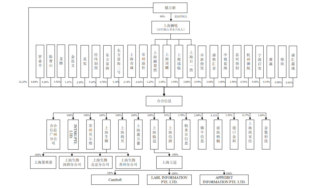 IPO前,合合信息董事长、总经理镇立新持股32.25%,为公司的控股股东、实际控制人,东方富海持股6.76%,经纬创投持股5.24%。