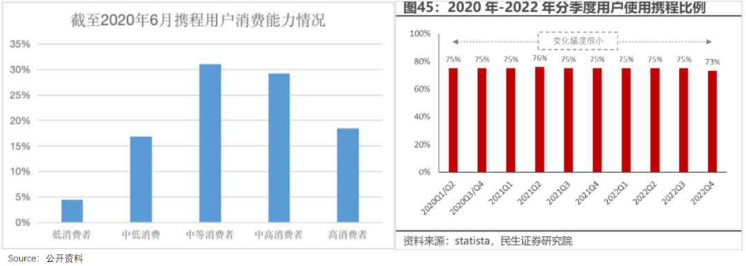 以携程为例,用户定位偏向于商务化,2022年下半年数据显示,80前的用户占比超过50%。这些“叔圈”“姨圈”顶流,撒起钱来毫不手软。