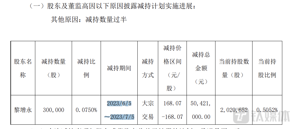 目前,公司监事黎增永已经实施减持计划,于6月5日至7月5日期间累计减持30万股,共套现5042.1万元,其余高管们减持进展暂未披露。(本文首发于钛媒体APP,作者|李若菡)
