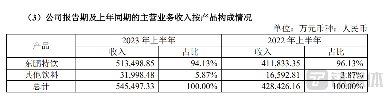 8月6日晚间,东鹏饮料(605499.SH)发布2023半年度报告。据半年报显示,公司实现营业收入54.6亿元,同比增长27.24%;归母净利润11.08亿元,同比增长46.84%;扣非净利润为9.9亿元,同比增长38.59%,营收、净利齐增。