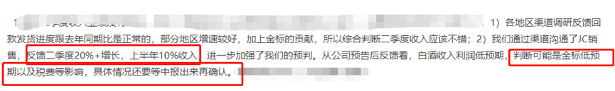 从今年上半年顺鑫农业的业绩预告看,白酒营业收入符合预期,但利润低于预期,市场判断可能是金标陈酿发展低于预期,但具体要等半年报正式发布。
