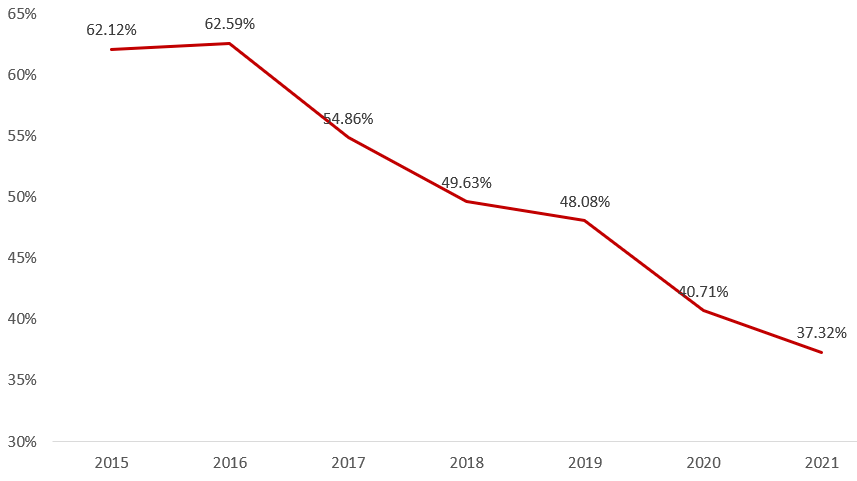 2022年,顺鑫农业实现营业收入81.09亿元,同比去年减少20.70%。而白酒的毛利率更是从2015年至2016年间的60%以上,跌至37%水平。