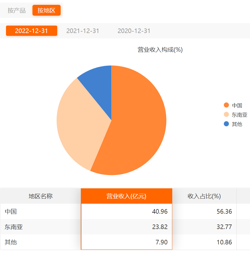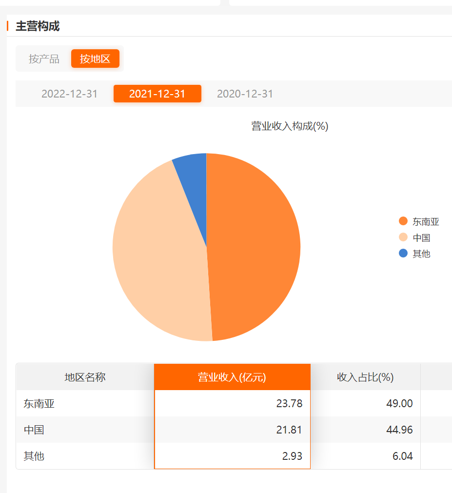 仅仅过了一年时间,东南亚还在23亿原地踏步,中国业务却原地翻番。
