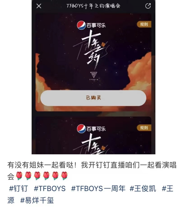 这不,TFBOYS演唱会刚结束,下一个演唱会拼单已经在路上。