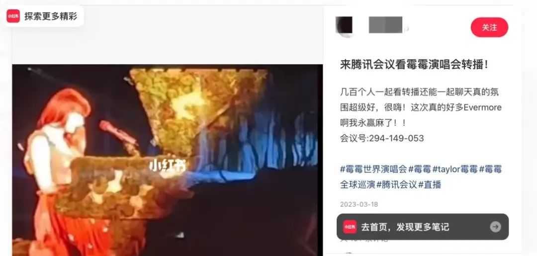 腾讯会议方便的不仅仅是国内演唱会,就连隔海相望的演唱会都能实现腾讯会议的无时差转播。今年3月,霉霉的演唱会开在大洋彼岸,隔着15个小时的时差,不少粉丝就通过“腾讯会议”看完了霉霉的演唱会转播。