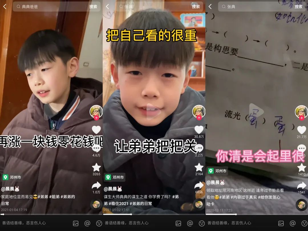 直到半年后,“晨晨”将镜头对准了自己的弟弟张典,从此迎来了涨粉的转折点。