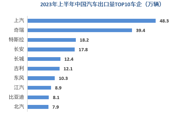 8月8日,中汽协发布的数据显示,上半年中国汽车出口234.1万辆,同比增长76.9%;如果看出口额的话,因为单车售价从1.8万美元提升到2万美元,出口金额为464.2亿美元,同比飙升了1.1倍。相比,上半年日本出口202万辆,微幅增长,被中国远远甩到了后面。