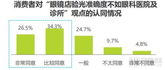 根据艾瑞咨询发布的《2021年中国眼镜镜片行业白皮书》调研显示,有60.8%的消费者对眼镜零售店的验光、配镜等专业服务的认可度不及眼科医院和眼视光诊所。