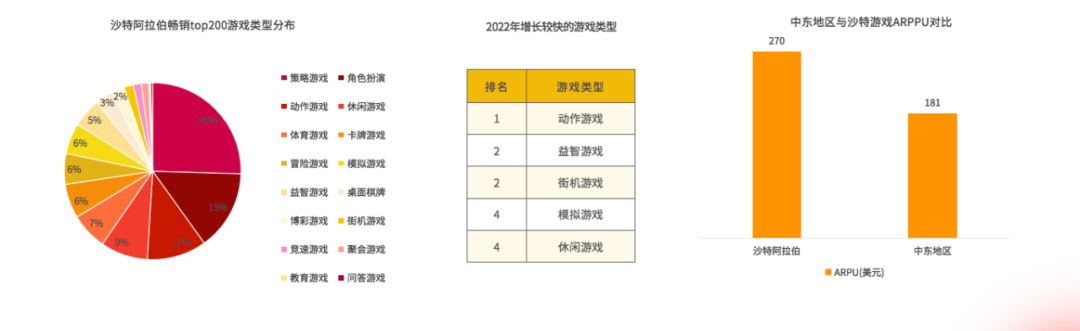 但相对中东其他地区,沙特对角色扮演、益智游戏有明显偏好,对卡牌游戏、桌面棋牌付费偏好相对较弱。