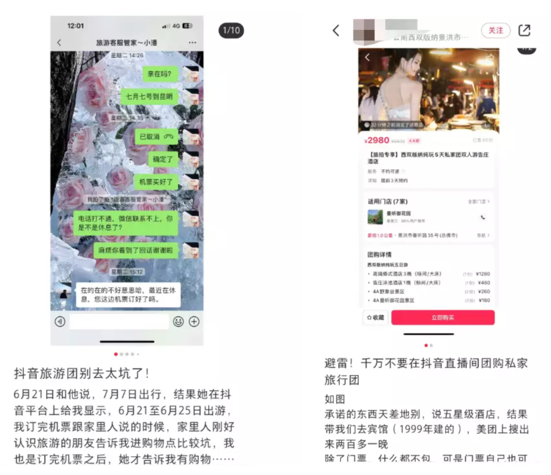 一方面,抖音对酒旅产品依然缺乏管控,负责安利产品的带货直播们也往往对于产品缺乏深入的了解,在信任上埋下危机。