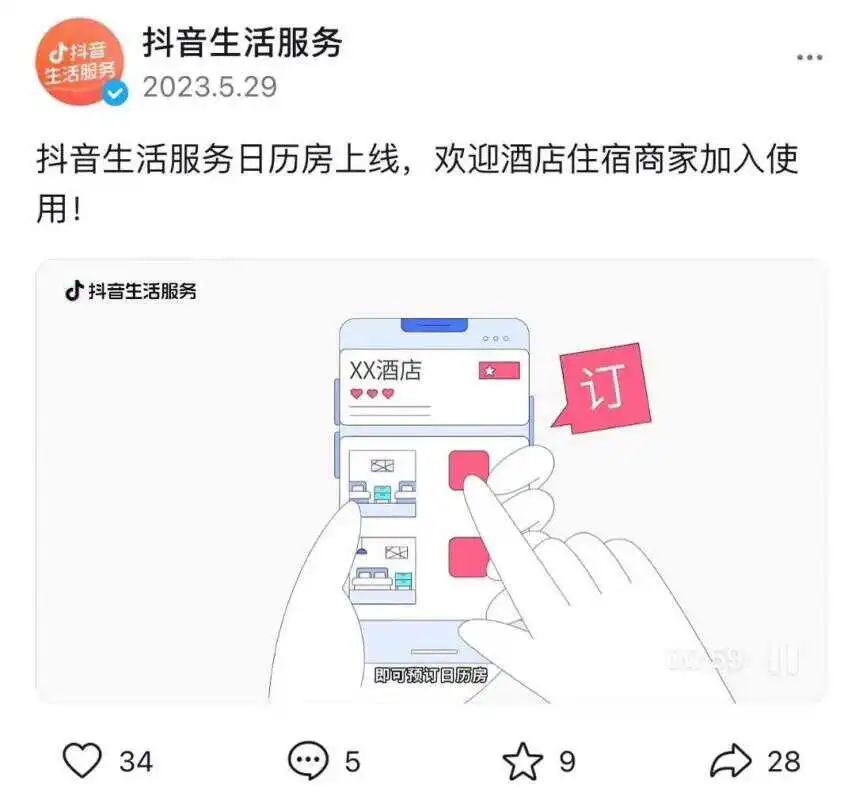 从“门票预定”和“酒店预定”等功能的上线,到一系列酒店旅游商家扶持政策,及帮助消费者直接订购房间的抖音“日历房”功能,不断拓展着抖音酒旅赛道的纵深发展。