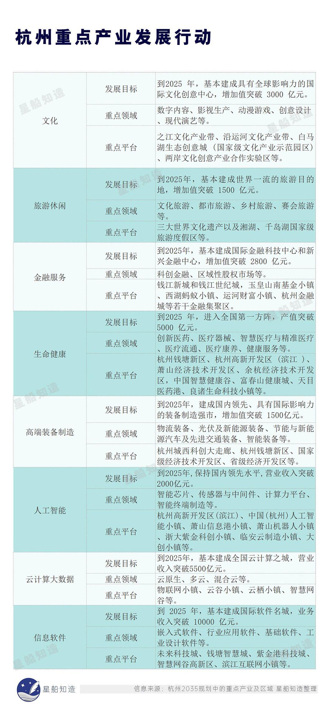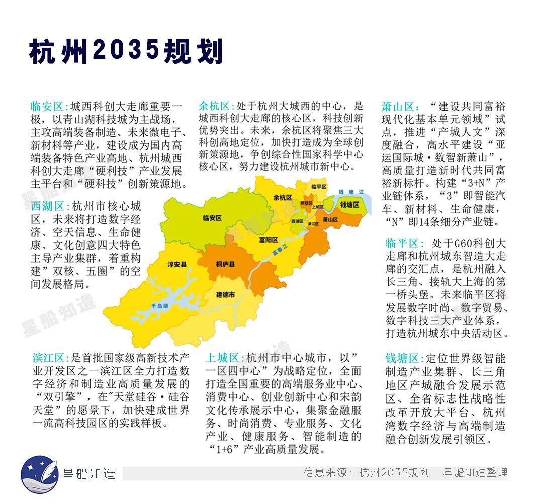 星船知造整理 杭州2035规划中的重点产业及区域