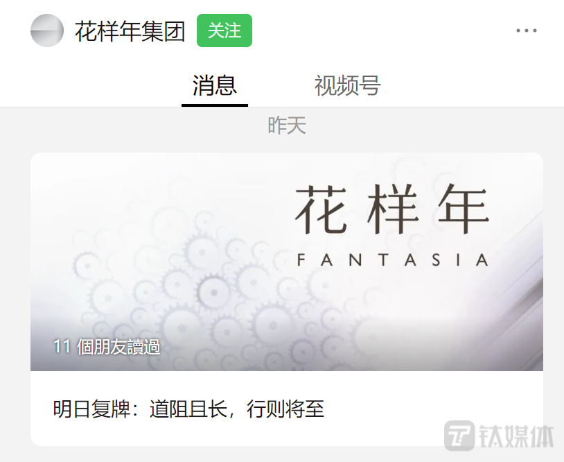 在8月10日宣布复牌当晚,花样年创始人曾宝宝曾在花样年官方微信公众号中向社会各方表达了感激之情,并称“复牌只是开始,花样年行而不辍,必未来可期”。