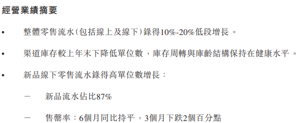 业绩正好“打脸”钱炜这一席话,在大促后,电商业务不涨反降。财报显示,李宁零售(直营)渠道录得中单位数增长,批发(特许经销商)渠道录得低单位数下降,电商虚拟店铺业务录得10%—20%低段下降。