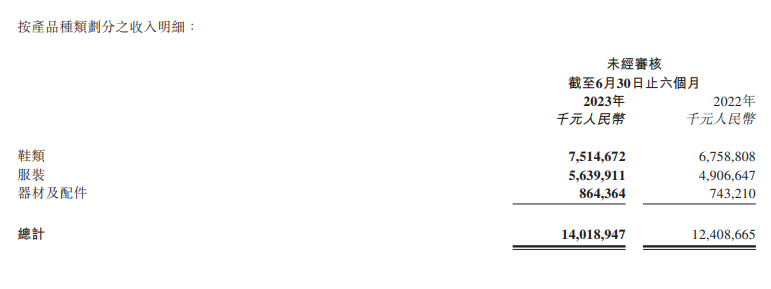 李宁收入由鞋类、服装、器材及配件三部分构成,其中服饰成了李宁业绩的软肋,鞋类则成为李宁拉动业绩增长的主要引擎。财报显示,服装收入下滑9.4%至107.09亿元,占总营收的比重由52.4%下滑至41.5%,而鞋类收入大幅增长41.8%至134.79亿元,占总营收的比重由上年的42.1%提升至52.2%。