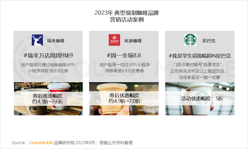 2、今年上半年,现制咖啡品牌价格战可谓愈演愈烈,库迪咖啡更是以#周一全场8.8元活动“高调亮相”