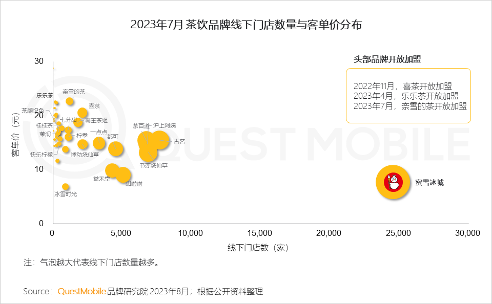 20元以上的中高端茶饮喜茶、乐乐茶、奈雪的茶相继开放加盟,直营+加盟双轮驱动,加速占领市场。