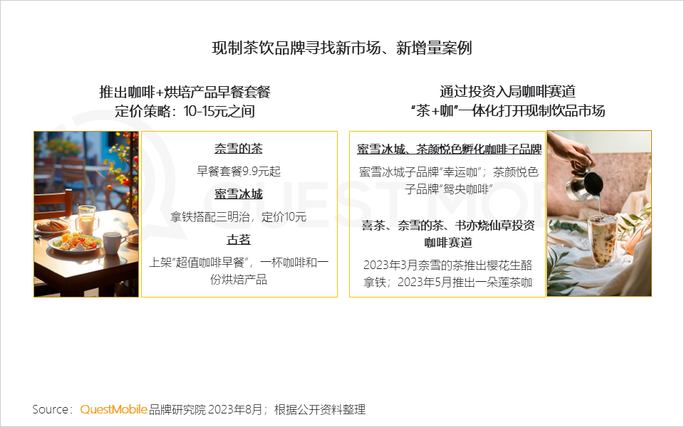 9、现制茶饮品牌则通过早餐套餐,跨界咖啡赛道寻找新的增长点,增加复购率,提升盈利空间