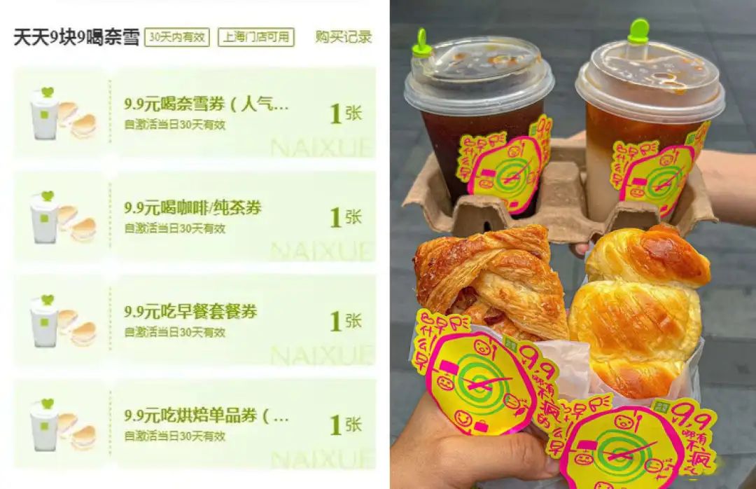 奈雪的茶最近更新了一大波“9”营销:吃奈雪早餐(一咖/茶一包9.9元),疯狂抽免单(9999份),还有近90万份早餐专属福利,抽1位发9999元早餐基金,承包1000天早餐...