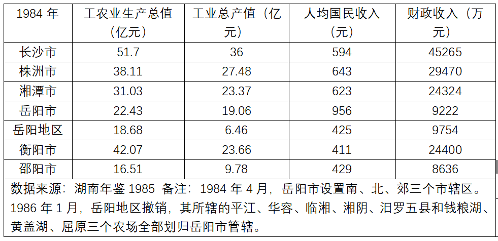 1984年,株洲的工业总产值和财政收入列全省第二,湘潭则位列第三,而两者的人均国民收入甚至超过了省会长沙。
