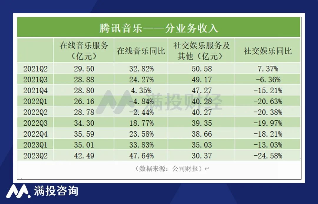 事实上,腾讯音乐也确实做到了,在在线音乐服务持续强劲表现的推动下,公司抵消了社交娱乐板块下降的影响,挽救了整体收入下降情况。