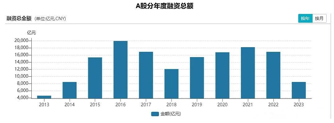 从数据看,每年A股融资的总额都控制在2万亿人民币以内,最高的2016年也不到2万亿。而且,2022年全部上市公司的分红总额已经超过2万亿,是9年来的首次,这也代表着一个时代的开端。