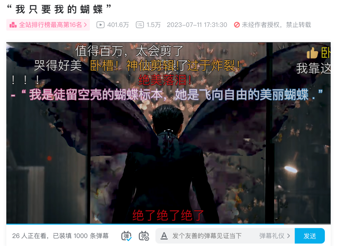 除此之外,主题性混剪也是当下二创的一大重要分支。主题性混剪往往由同一主题牵连,采用多部影视IP或视频内容进行混剪,对创作者的剪辑水平要求较高。