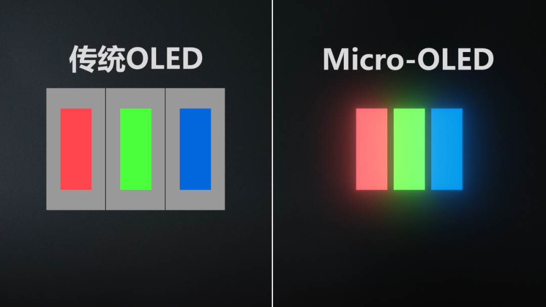 针对于此,现在已经有很多厂商都在搞新的RGB Micro-OLED方案,也就是在不用金属掩膜板的情况下,直接密集铺设自带颜色的红、绿、蓝三种发光材料的微小像素,从而在实现超高分辨率以及规避“纱窗效应”的同时,让屏幕拥有高亮度。
