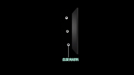 简单来说,它不需要用掩膜版的网格来将红、绿、蓝发光材料“摆”到不同位置上,而是直接向整个基板喷涂白色发光材料,再利用基板上额外附着的一层RGB滤光片,让像素点呈现出不同颜色。