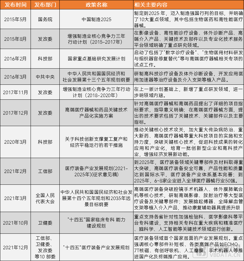 国家级支持高端医疗器械研发的相关政策
