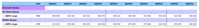 根据腾讯的财报数据,2023年二季度腾讯游戏端游和手游的平均每用户付费(ARPU)分别为555 - 565元和285 - 295元,皆创下单季度新高。也就是说,腾讯游戏用户的平均氪金金额已经创下了历史新高,就连刘炽平自己认为发布了大量商业化内容的第一季度,ARPU都还不及本季。