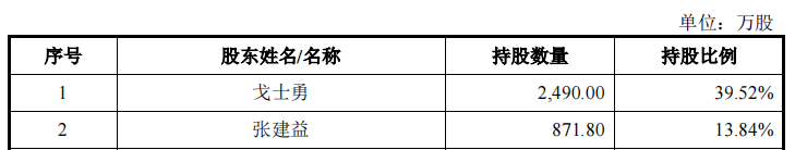 招股书显示,润玛股份实控人为戈士勇、张建益和戈烨铭,戈士勇和张建益系夫妻关系,戈烨铭系两人之子。三人通过直接和间接方式合计控制公司58.12%的股份。