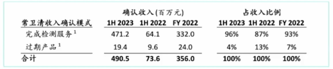 对此,诺辉健康CEO朱叶清称,常卫清的收入确认是以完成检测服务为主,并全部经过外部审计师的审计/审阅。具体而言,根据会计准则,常卫清的收入确认有且仅有两种情形,一方面为完成检测服务,这部分占常卫清2023年上半年收入的96%,过期产品也为常卫清贡献了4%的收入。