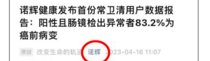此外,诺辉健康还于2023年4月在公众号发布过《常卫清用户数据报告》中指出,阳性且肠镜检出异常者83.2%为癌前病变。王复也表示,这个数字一定夸张了。
