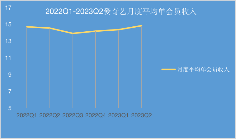 根据财报数据,2023年Q2,爱奇艺虽然会员数环比减少了1700万,但月度平均单会员收入却从Q1的14.35元增长至14.82元,环比上涨3%。而从2022年Q3以来,爱奇艺的月度平均单会员收入便呈现持续上升的趋势。