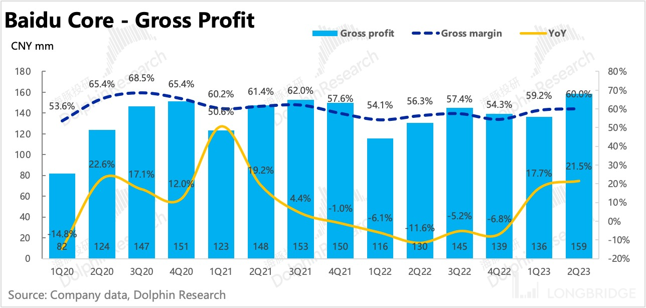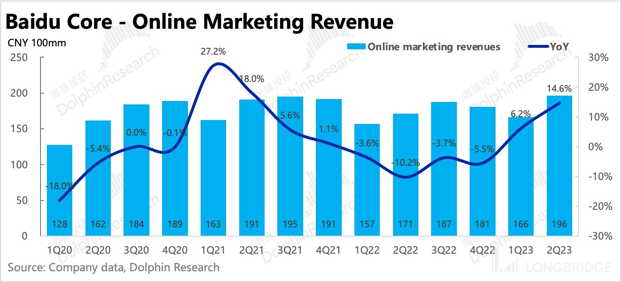 二季度广告亮眼,下半年有望保持或加速。二季度百度核心广告在低基数上,回暖幅度(同比 14.6%)比机构预期(12% 左右)得更好。