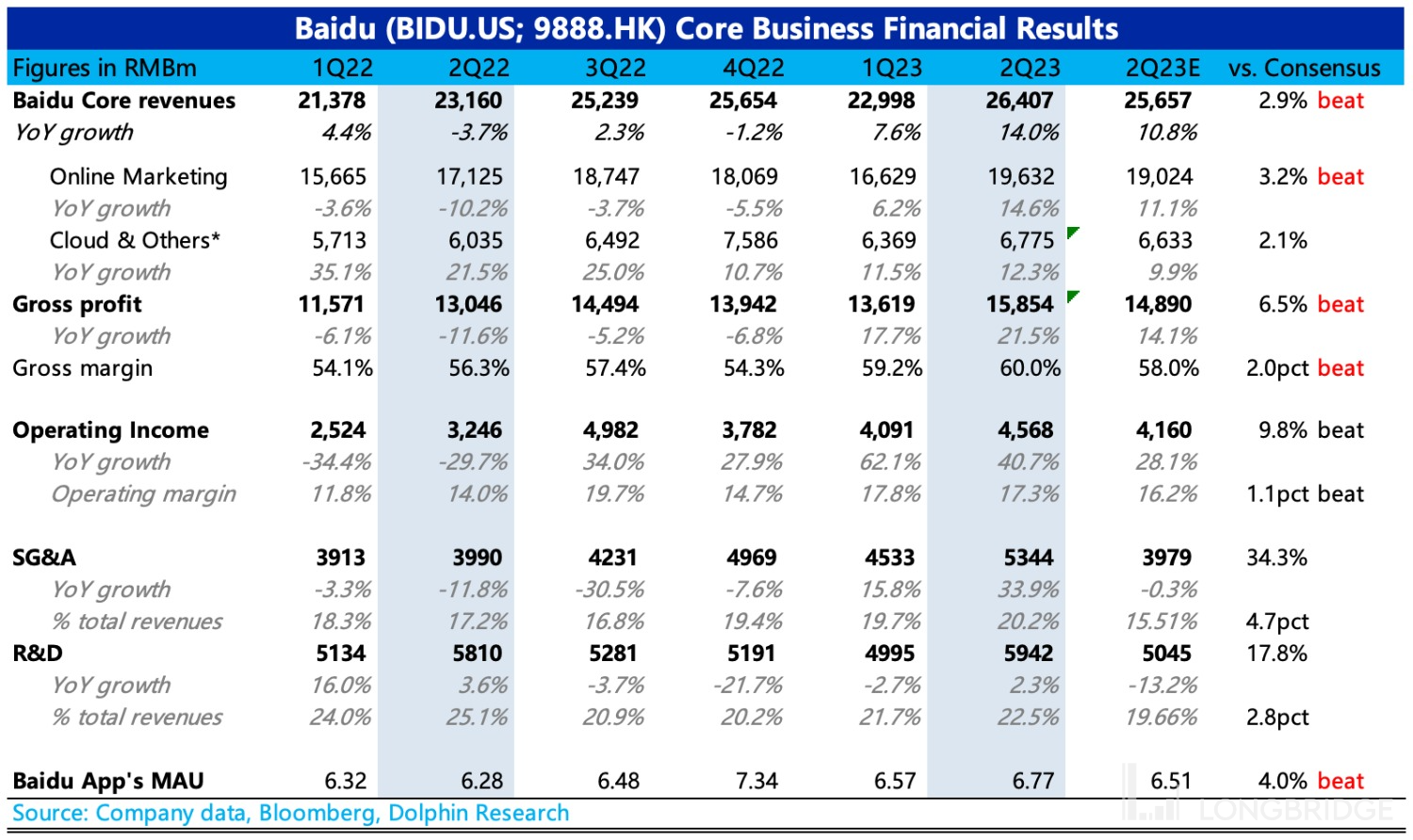 北京时间 8 月 22 日港股盘后,$百度.US(9888.HK;BIDU.O)发布了 2023 年二季度财报。由于爱奇艺业务变化已经发生多个季度,并且有望逐步走通商业模式,因此这次我们除了看百度核心业务之外,也会在最后单独讨论下 $爱奇艺.US 的情况。