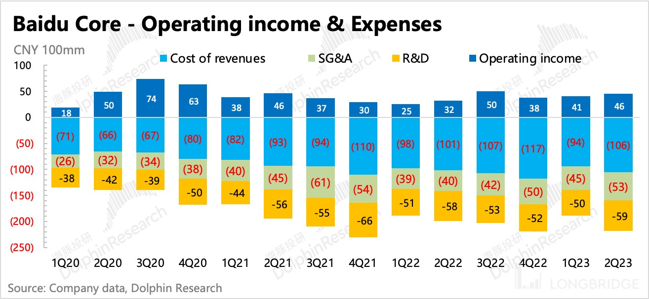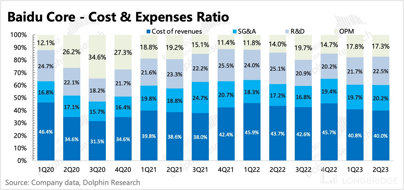 我们预计下半年研发投入以及成本项的绝对值还会继续增长,尤其是当退出文心一言 AI 机器人面向 C 端市场后,短期算力需求的陡增会带来更多的芯片服务器折旧成本和人员研发费用,但短期 AI 的商业化节奏还不能完全跟上,因此对利润率带来压力。