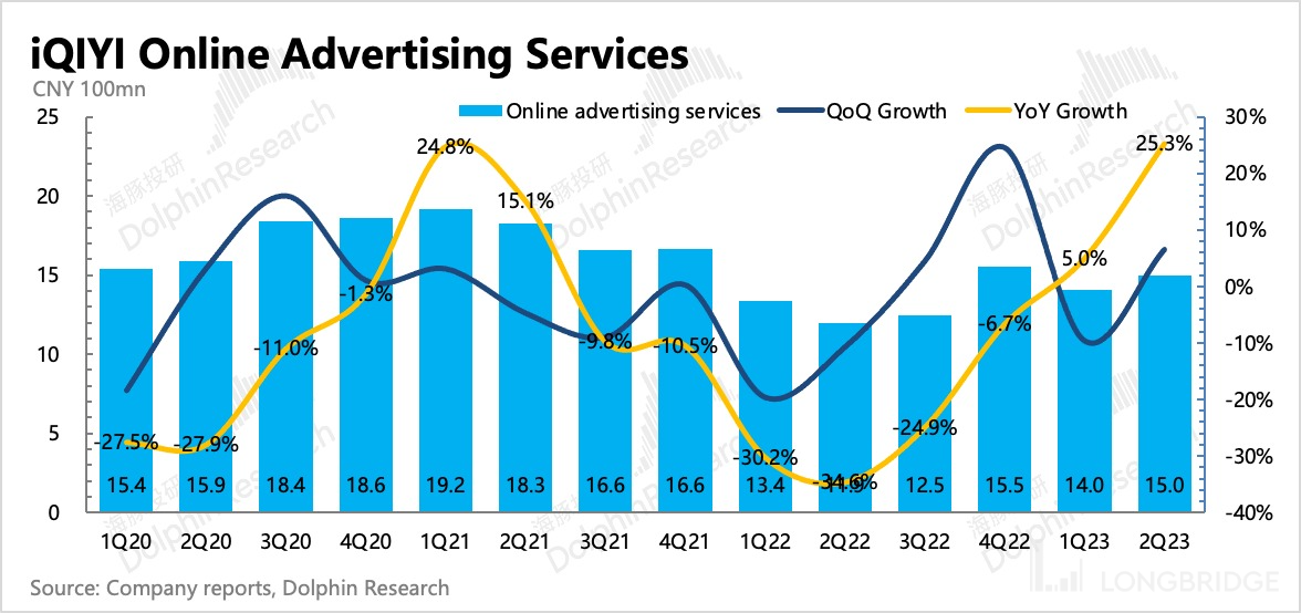 另外,爱奇艺的广告收入也不赖,在内容供给相比同行较弱下也有 25% 的增长,只是机构预期得比较充分。