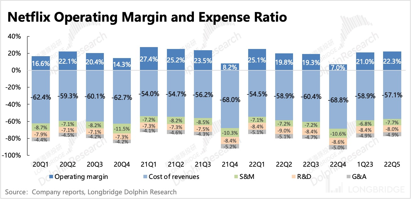 而涨价的同时,爱奇艺也在内容投资上遵循聚焦精品、优选项目的方针,因此使得当期内容摊销逐步走低,订阅会员收入已经能够完美覆盖住占比超 70% 的内容成本。这样剩余的广告、内容摊销以及其他衍生业务收入,就能够覆盖剩下的带宽成本以及经营费用,并且有 5-10% 的净利润盈余。