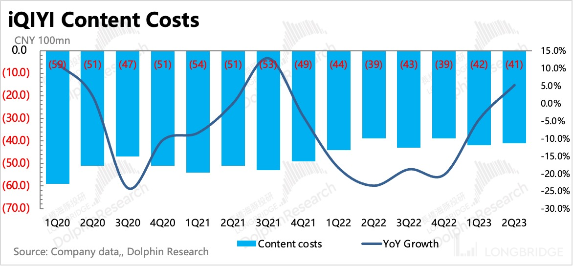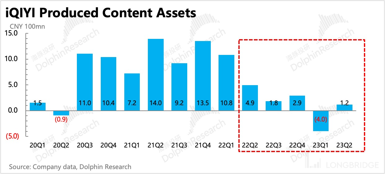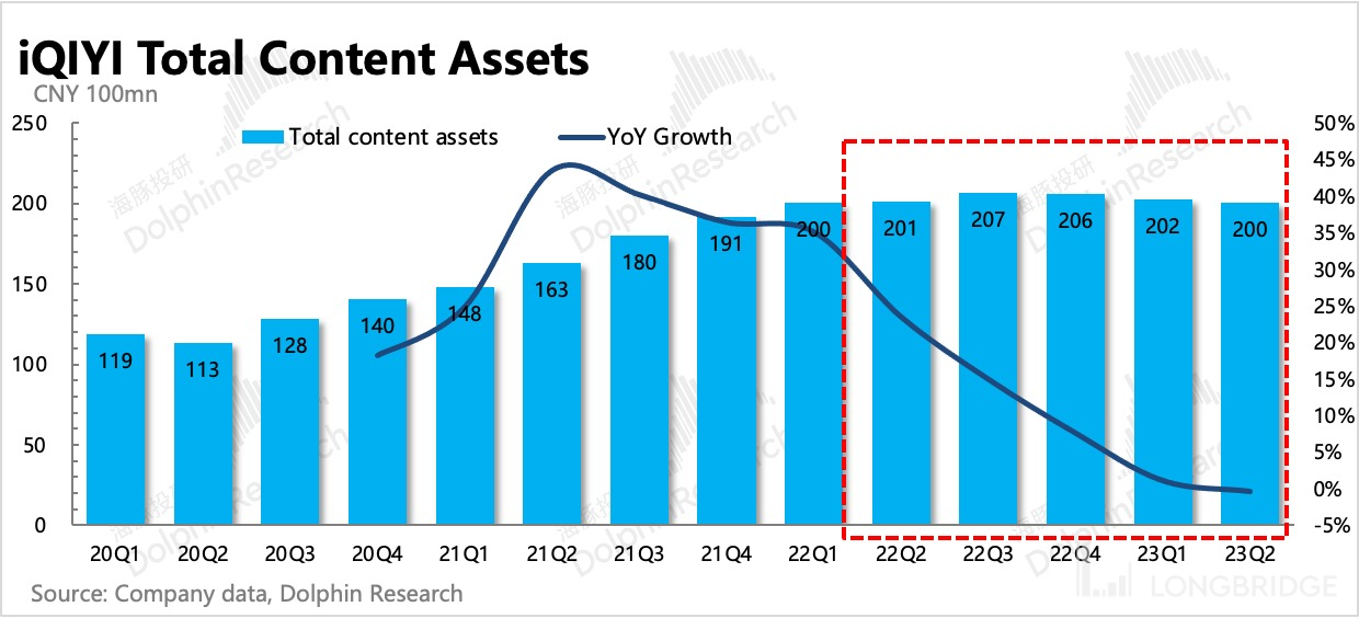 从内容资产变化情况来看,从 2022 年二季度开始,爱奇艺的内容投资和制作就在快速减少,继而在近期存量内容资产增速已经快速下滑。