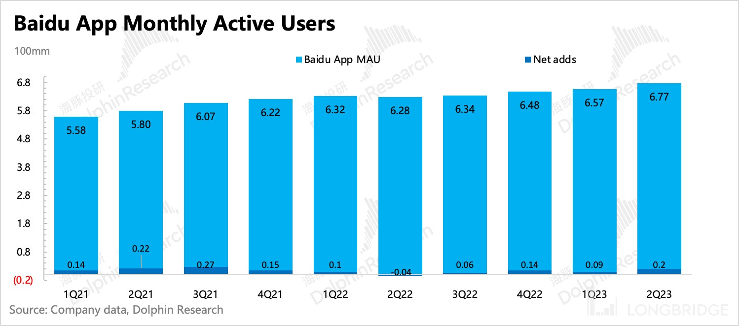 一方面,百度的生态流量还在扩张,手百 app 月活达到 6.77 亿,同比增长 8%。