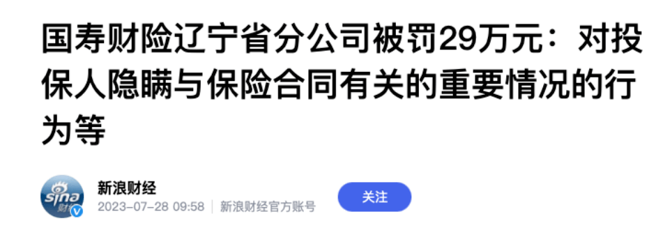 在2023年7-8月银保监发布的保险业行政处罚信息公示中,中国人寿还因违规隐瞒投保人等问题接到罚单。