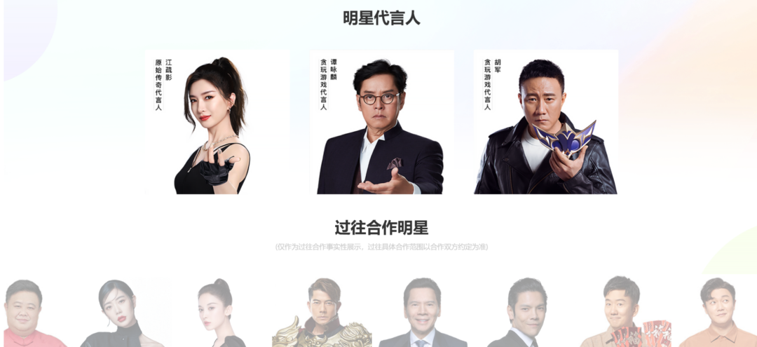 打开中旭未来官网的游戏业务页面,你会产生一个错觉,这不是一家游戏公司,而是一家娱乐经纪公司。