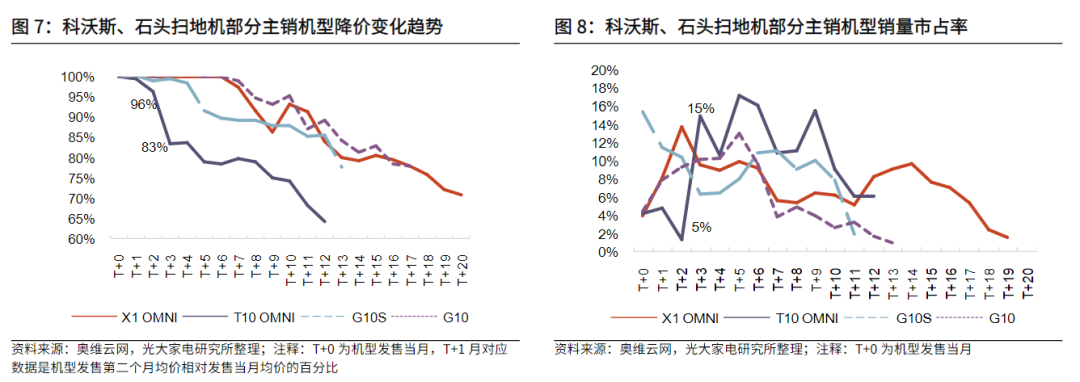 (科沃斯、石头扫地机器人部分主销机型降价变化趋势 图源:光大证券)