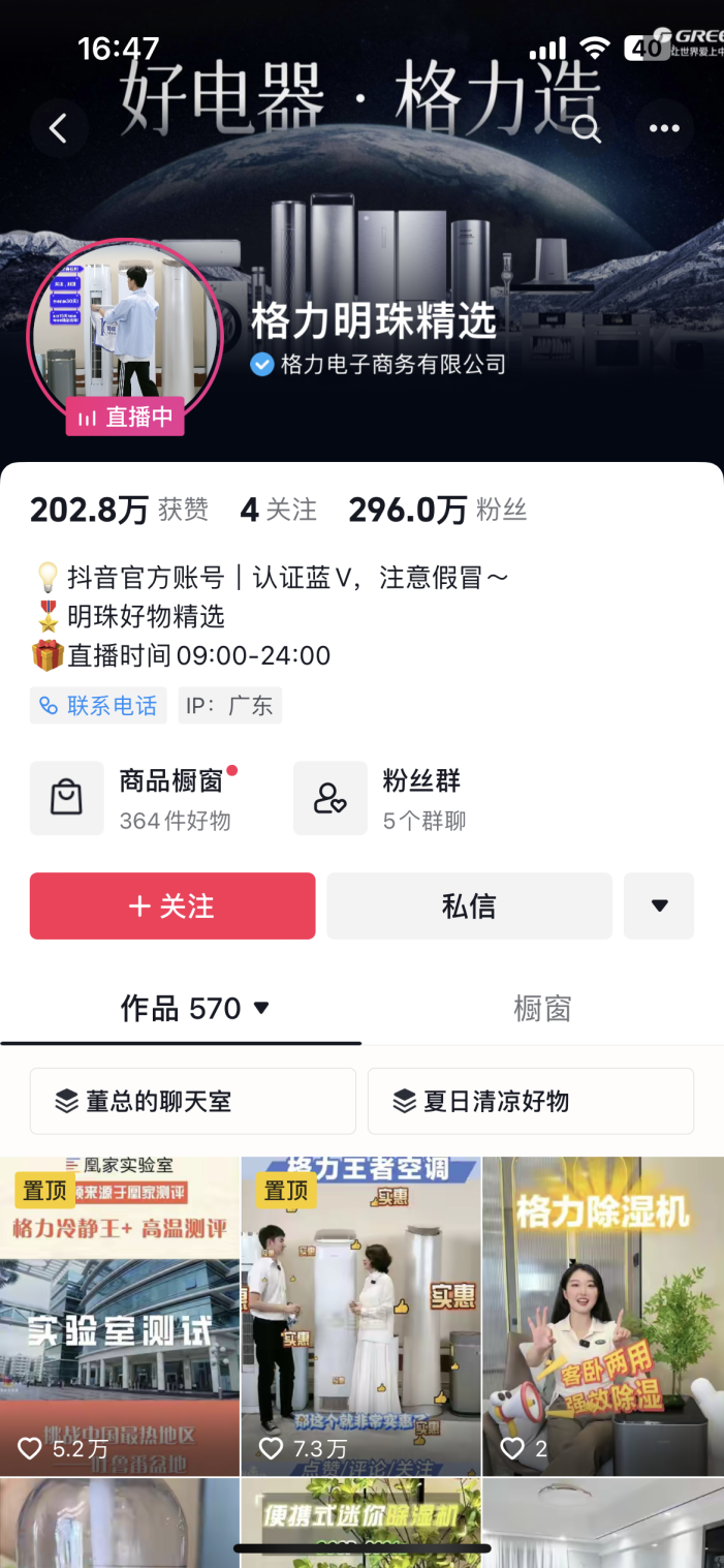 这也让董明珠看到了新的希望,2021年9月,董明珠招聘了集颜值与能力于一身的孟羽童担任秘书,随后孟羽童频繁出现在直播间,经过持续带货,“明珠羽童精选”(已改为“格力明珠精选”)抖音账号吸粉近300万。