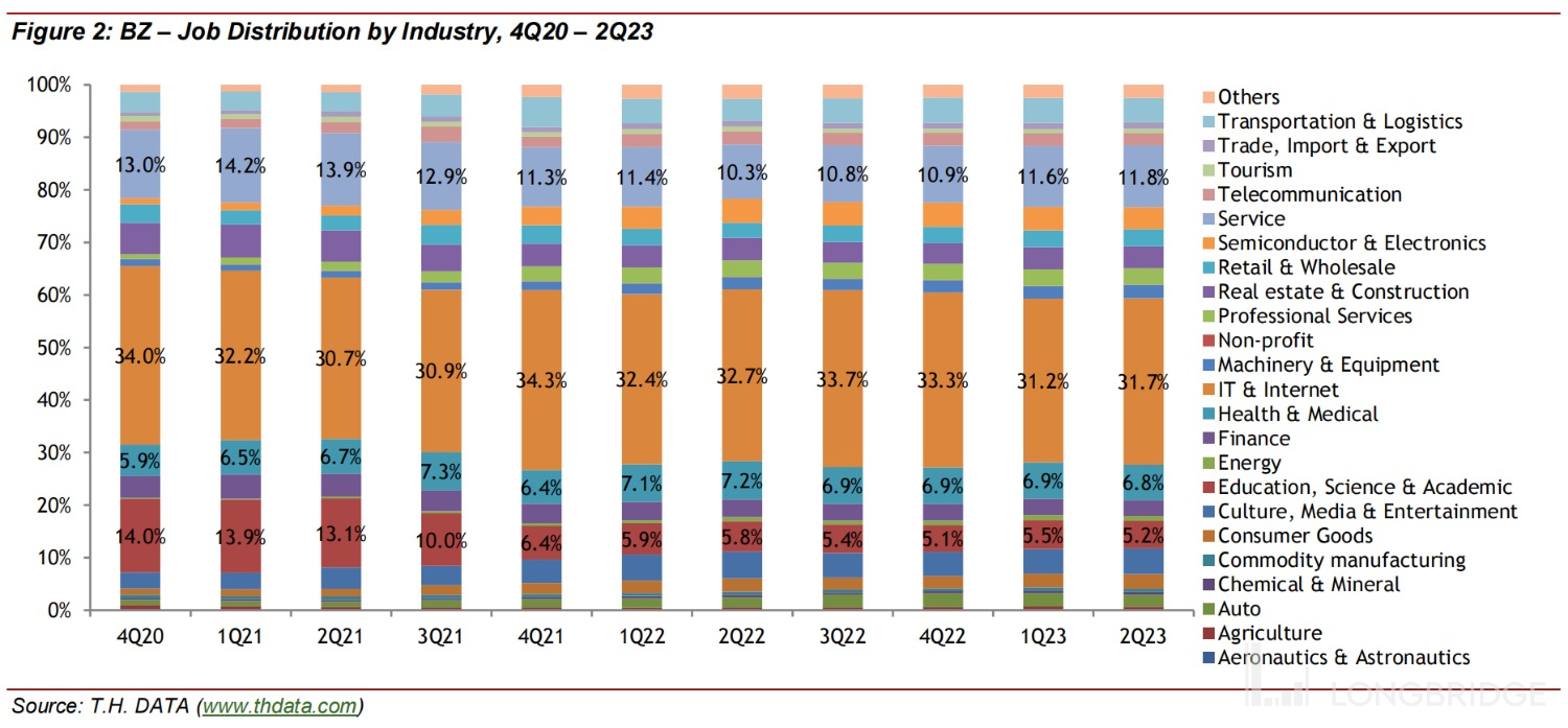 这里海豚君认为,除了二季度宏观预期不好,企业招聘需求恢复缓慢外,也有前面提到的 “金三银四” 提前到 “金二银三” 的原因。