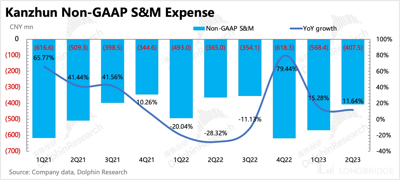 二季度 BOSS 直聘核心主业的经营亏损(收入 - 成本 - 销售费用 - 研发费用 - 行政费用)环比转正,也比预期高了近一倍,主要在于获客支出的超预期减少。