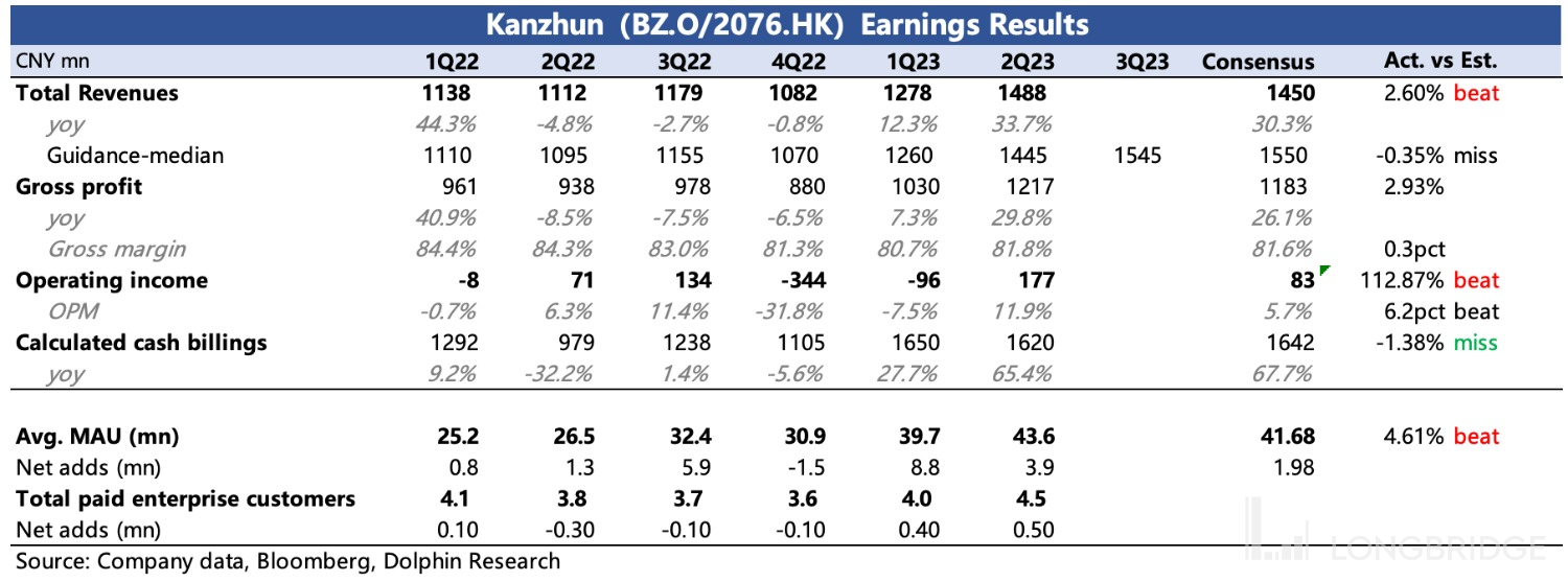 北京时间 8 月 29 日港股盘后,$BOSS 直聘.US 发布了 2023 年二季度业绩。