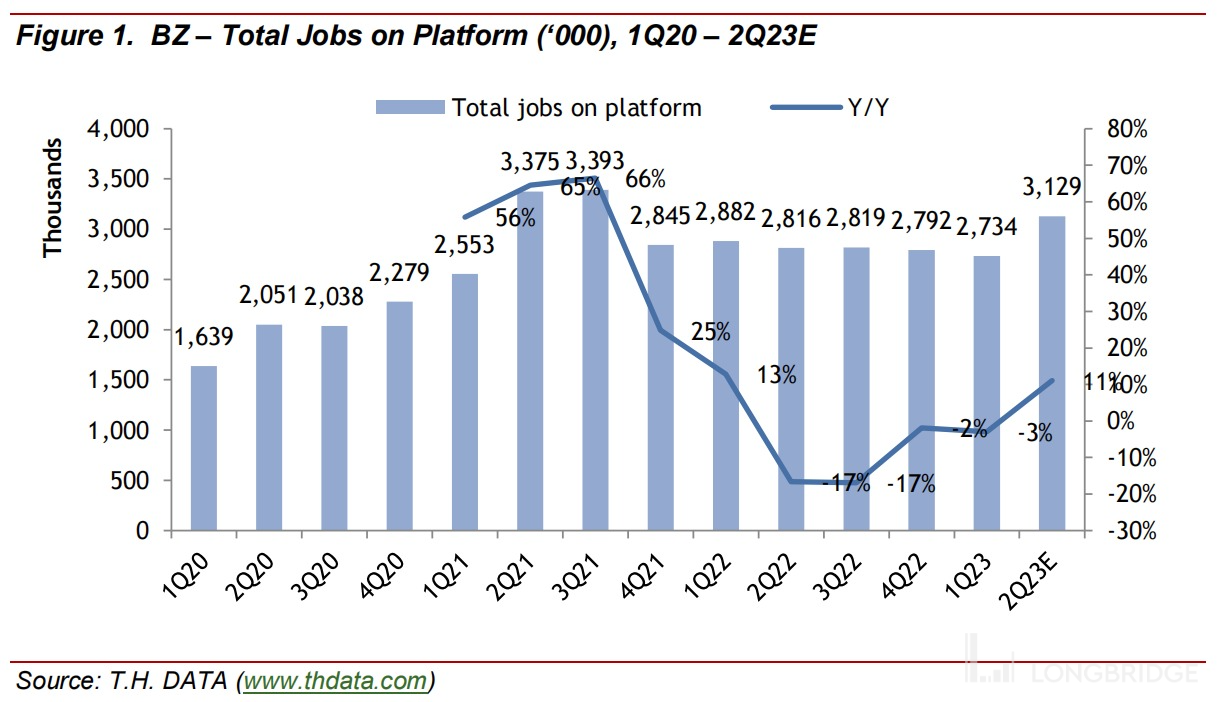 (2)因此对应到当下来看,Q2 的业绩说明的问题其实和 Q1 类似,即宏观压力下,就业市场失衡,一方面增多粥少求职者源源不断,另一方面企业也有控费需求,因此对招聘的付费动力不足。